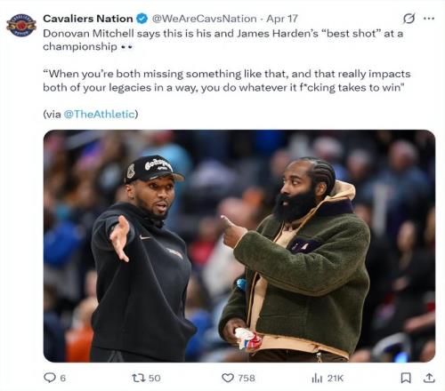 米切尔也在采访中说道:这是我们夺冠的绝佳机会,这就是哈登选择来这里的原因,哈登一直以来都保持着非常高的水平,我和哈登都缺少总冠军,我们都需要为了历史地位努力去拼总冠军,我们会XX不惜一切代价去赢球。